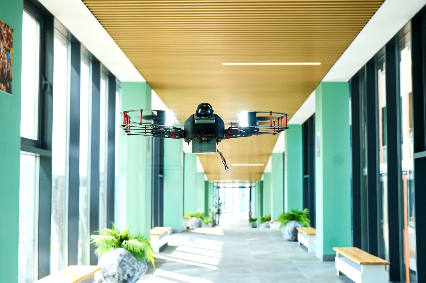 Полётные задания автоматизированы с возможностью коррекции оператором. Встроенные системы навигации ориентироваться в пространстве без GPS на расстоянии до 1000 метров, дрон автоматически распознаёт и обходит препятствия, не боится столкновений. При потере связи устройство автоматически возвращается в точку старта. Корпус защищён от ударов и контакта с конструкциями, что критично для полётов в тесных и тёмных помещениях. На борту - лидар, 4K-камера с гиростабилизацией и мощная светодиодная подсветка. Дрон можно дооснастить полезной нагрузкой, например, тепловизором, ультрафиолетовой камерой или газоанализатором для обнаружения утечек газа.