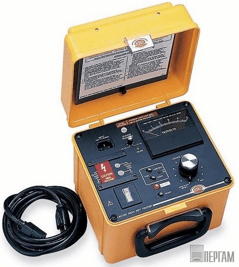 Данные портативные приборы используются для проверки электрической прочности диэлектриков, электрической изоляции, а также целостности схемы заземления трехфазных приборов и аппаратов. Испытательные приборы высокого напряжения соответствуют большинству существующих требований технике безопасности. Испытательные приборы высокого напряжения переменного тока автоматически отключаются, если сопротивление цепи заземления проверяемого объекта превышает 15 Ом в любой момент проверки. Данную особенность можно обойти при проверке приборов с двойной изоляцией или при использовании тестовых щупов. Испытательные приборы высокого напряжения переменного/постоянного тока оборудованы ползунковым переключателем для выбора испытательного напряжения переменного или постоянного тока.
