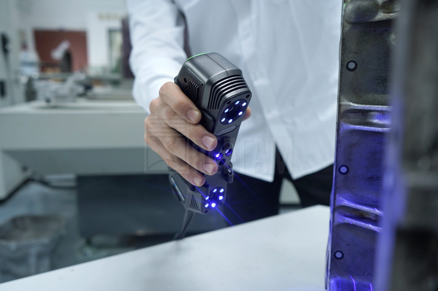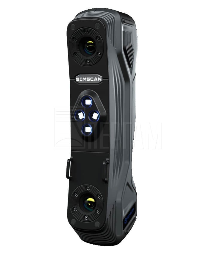 SIMSCAN 42 - ручной лазерный 3D сканер миниатюрных размеров, предназначен для быстрой и точной оцифровки деталей, небольших и крупногабаритных объектов. 3D-сканер имеет несколько режимов работы - с 17 синими лазерных перекрестиями (34 линии) для быстрого охвата общей формы объекта, 7 синими параллельными линиями для детального сканирования поверхностей и текстур, а также 1 синюю лазерную линию для труднодоступных участков.