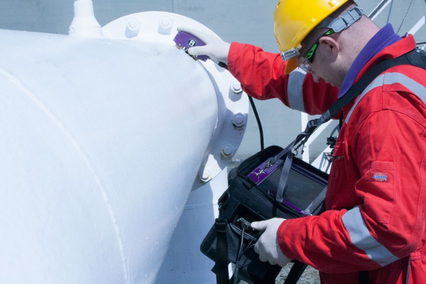 Ручной одноосный сканер для контроля толщины стенок резервуаров R-scan Lite. Прибор оснащён двойным колесным датчиком сухого соединения с частотой 5 МГц, позволяющий проводить ультразвуковое B-сканирование с визуализацией без традиционной среды, обеспечивающей ультразвуковой контакт. Сканер подходит для труб диаметром от 50 мм и плоских пластин.