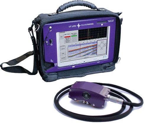 Работающий от аккумулятора (7 часов при полной зарядке) цифровой ультразвуковой преобразователь/приемник обрабатывает UT-сигналы и комбинирует эту информацию с детальной информацией о положении, полученной от одноосевого кодировщика. R-Scan через порт USB 2.0 подключен к портативному компьютеру (UMPC) последнего поколения, который поддерживает сканирование со скоростью до 200 мм/с. Программа снабжена стандартными средствами управления дефектоскопом для настроек A-сканирования, упрощающими требования к обучению и эксплуатации.