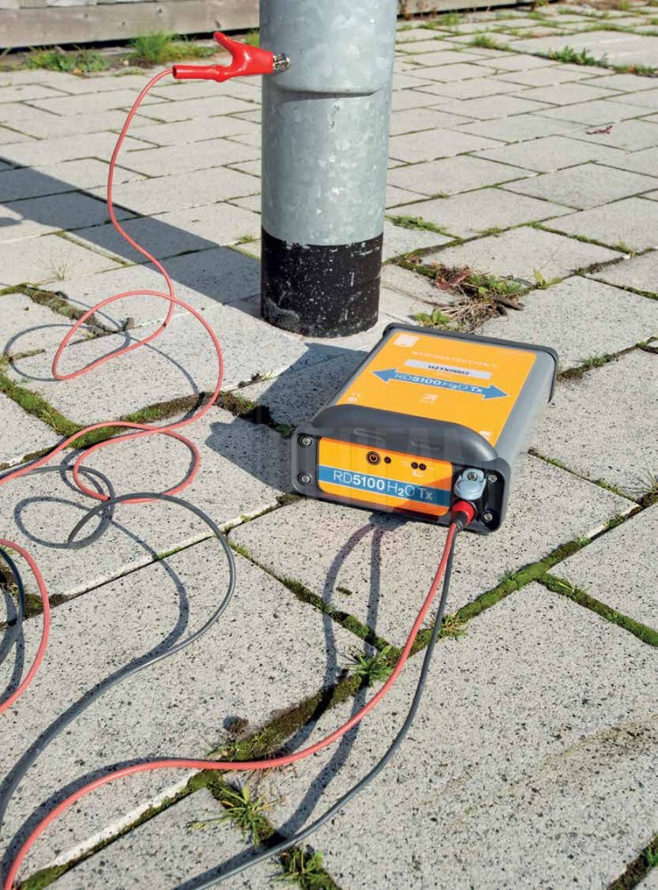 RD5100H2O работает в режиме навигации при частоте 83 кГц. Сигнал хорошо распространяется по газо- и водопроводам даже с изоляторами между участками. Есть режим локации по интенсивности сигнала.