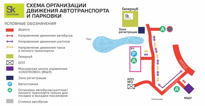 Добраться до Гиперкуба «Сколково» можно как на персональном автомобиле, так и на организованном бесплатном автобусном трансфере.