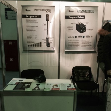 На выставке было представлено большое количество оборудования в области робототехники, спасательной экипировки и тепловидения. Наша компания представила на этой выставке электромеханические и пневматические мачты для построения мобильных комплексов наблюдения и передачи данных, осветительные мачты — для проведения спасательных операций и массовых мероприятий. Также нашей компанией были представлены мобильные тепловизоры для пожарных Halo и автомобильный тепловизор Pergam Driver, предназначенные для работ в условиях задымления и при отсутствии освещения.